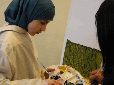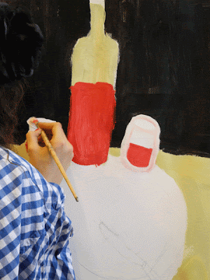 De opdracht: maak een schildering geïnspireerd op een plaatje, tekening of een foto uit je dummy. Daarna bekijk en bespreek je elkaars werk.