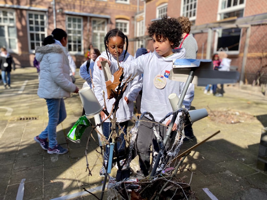 Tijdens het middagprogramma werd de groep in twee kleinere groepen opgedeeld. Beide groepen blikten terug op de Nationale Kinderherdenking van 2020. Bij meester Nathaniël werd met elkaar nagedacht en gefilosofeerd over wat een ‘eerbetoon’ nu eigenlijk is en wat het betekent. “Dat is het tonen van je respect voor iets of iemand,” zo merkt Filza op. “Wie of wat is volgens jullie zo’n eerbetoon waard?” vroeg de meester aan de groep. Amberly: “Belangrijke mensen!” “Bestaan er ook onbelangrijke mensen?” vraagt de meester. “Nee!” Antwoord Amberly resoluut. “En zijn er naast personen ook andere dingen die ons respect verdienen?” Tyler: “Insecten! Want insecten zijn heel belangrijk, die helpen bij de groei van bloemen en planten en daardoor hebben wij uiteindelijk ook te eten.”